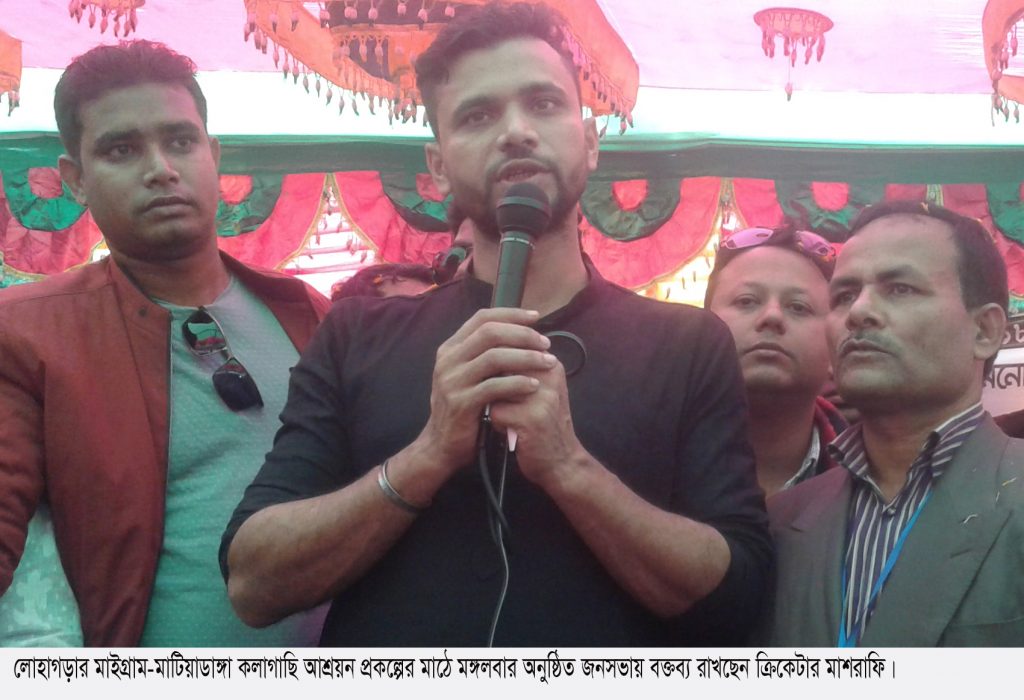 সকালে মাশরাফি এড়েন্দা বাস স্ট্যান্ডে, ঝিকড়া গ্রামে, আমাদা, কোলা, দিঘলিয়া, বড়দিয়া এলাকায় ব্যাপক গণসংযোগ করেন। বিকালে কোটাকোল ইউপির মাইগ্রাম-মাটিয়াডাঙ্গা কলাগাছি আশ্রয়ন প্রকল্পের মাঠে যুবলীগ নেতা এস এম মিজানুর রহমান মিজান আয়োজিত বিশাল জনসভায় মাশরাফি প্রধান অতিথির বক্তব্য রাখেন।