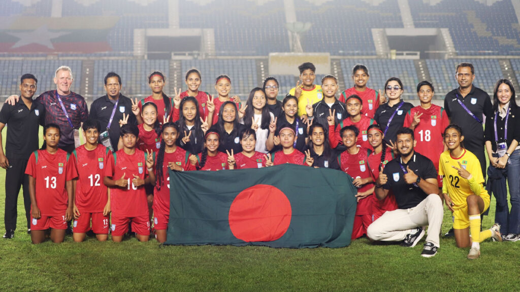 ইতিহাসে প্রথমবারের মতো এএফসি এশিয়ান কাপের মূল পর্বে জায়গা করে নিয়েছে নারী ফুটবল দল। গতকাল শনিবার বাছাই পর্বের শেষ ম্যাচে তুর্কমেনিস্তানকে ৭-০ গোলে হারিয়েছে নারীরা। এতে গ্রুপ চ্যাম্পিয়ান হয়েই এশিয়ান কাপে পা রাখছে ‘বাঘিনীরা’। যদিও তিনদিন আগেই এশিয়ান কাপের যাত্রা নিশ্চিত হয়ে গেছে।