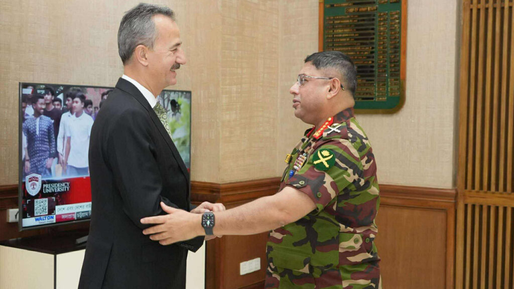 বাংলাদেশ সেনাবাহিনীর প্রধান জেনারেল ওয়াকার-উজ-জামানের সঙ্গে সৌজন্য সাক্ষাৎ করেছেন তুরস্কের ডিফেন্স ইন্ডাস্ট্রিজের সেক্রেটারি অধ্যাপক হালুক গরগুন। মঙ্গলবার (৮ জুলাই) সেনা সদরে এ সাক্ষাৎ অনুষ্ঠিত হয়।
