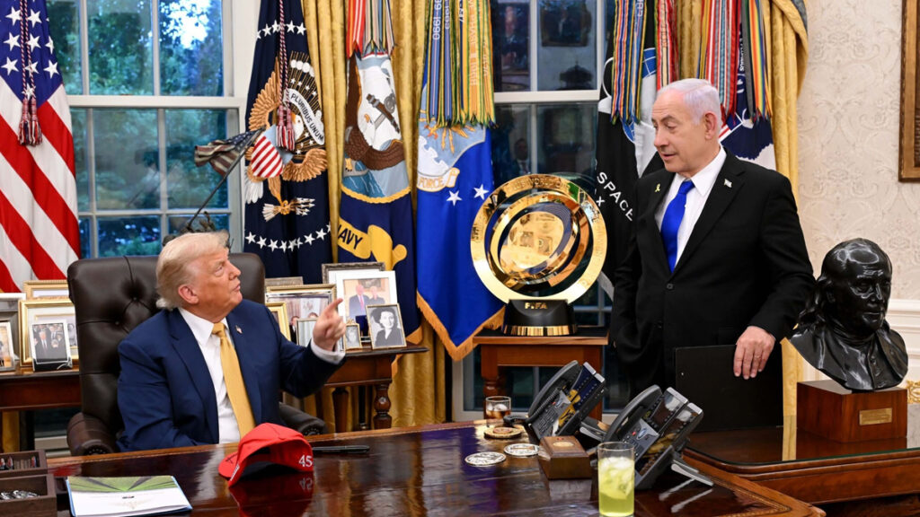 ইসরাইলের প্রধানমন্ত্রী বেনিয়ামিন নেতানিয়াহু দুই দিনের মধ্যে দ্বিতীয়বারের মতো মার্কিন প্রেসিডেন্ট ডোনাল্ড ট্রাম্পের সাথে হোয়াইট হাউস বৈঠক শেষে চুপচাপ ফিরে গেছেন। গাজায় যুদ্ধবিরতি ও জিম্মি মুক্তির আলোচনা—যা এই বৈঠকের মূল বিষয় ছিল—তা নিয়ে কোনো অগ্রগতি ঘোষণা করা হয়নি।