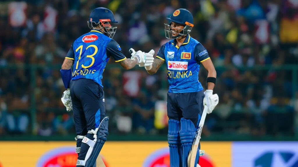 নির্দিষ্ট রানের লক্ষ্যে ব্যাট করতে নেমে শুরুতেই দুর্দান্ত এক জুটি গড়ে পাথুম নিশাঙ্কা ও কুশল মেন্ডিস। দলীয় ৭৮ ও ব্যক্তিগত ৪২ রানে মিরাজের বলে রিশাদের তালুবন্দি হয়ে মাঠ ছাড়েন নিশাঙ্কা। মাত্র ১৬ বলের এই ঝড়ো ইনিংসে তার ব্যাট থেকে আসে ৫টি চার ও ৩টি ছক্কা।