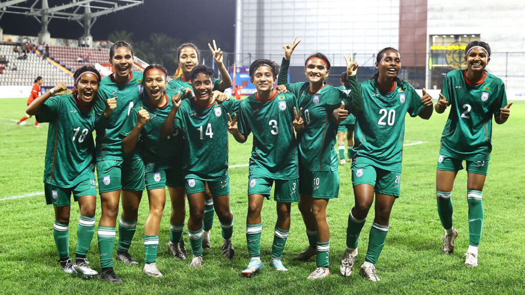 শুরু থেকেই প্রতিপক্ষের ওপর চাপ সৃষ্টি করে খেলতে থাকে বাংলাদেশ। ১৪ মিনিটে পরিকল্পিত আক্রমণে জটলার মধ্যে বল পেয়ে বাংলাদেশকে লিড এনে দেন সিনহা জাহান শিখা। ৩৬ মিনিটে সাগরিকার গোলে ব্যবধান দ্বিগুণ হয় লাল-সবুজ প্রতিনিধিদের।