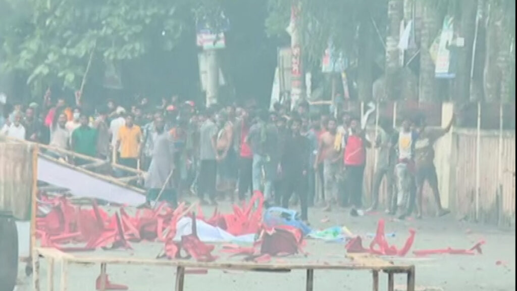 এর আগে, বুধবার দুপুরে নিষিদ্ধ সংগঠন ছাত্রলীগ ও কার্যক্রম নিষিদ্ধ থাকা আওয়ামী লীগের নেতাকর্মীরা চৌরঙ্গী মোড়ে এনসিপির নেতাদের গাড়িবহরে দুই পাশ থেকে হামলা চালায় ও ইট-পাটকেল ছুড়ে। এরপর থেকে দফায় দফায় হামলার ঘটনা ঘটে। এ সময় পুলিশ, সেনাবাহিনী তাদেরকে পিছু হটানোর চেষ্টা চালায়। এছাড়া, জেলায় ১৪৪ ধারা জারি ও চার প্লাটুন বিজিবি মোতায়েন করা হয়েছে।