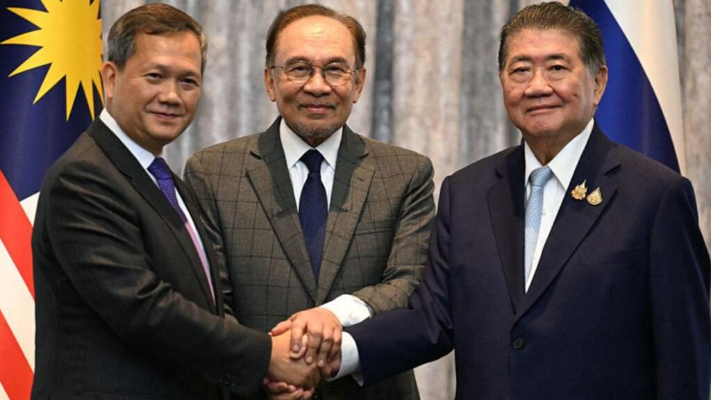 থাইল্যান্ডের ভারপ্রাপ্ত প্রধানমন্ত্রী ফুমথাম উইচাইয়াচাই এবং কম্বোডিয়ার প্রধানমন্ত্রী হুন ম্যানেট স্থানীয় সময় সোমবার (২৮ জুলাই) মালয়েশিয়ার প্রশাসনিক রাজধানী পুত্রাজায়ায় আনোয়ারের সরকারি বাসভবনে আলোচনায় মিলিত হন।
