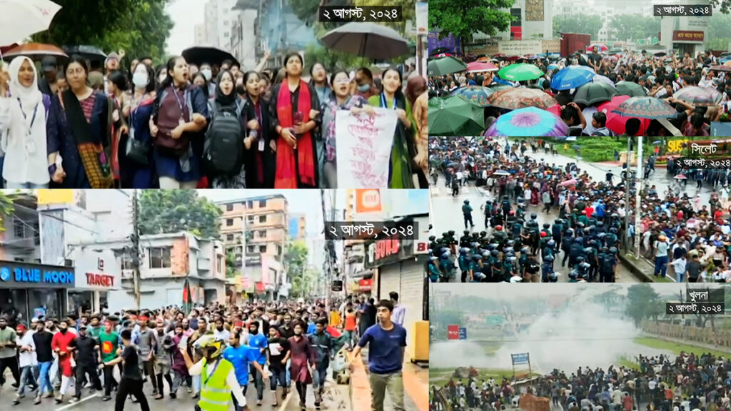 চব্বিশের ২ আগস্ট বা ৩৩ জুলাই। ততদিনে ধৈর্য হারিয়েছে গোটা জাতি। আন্দোলন এখন আর শুধু শিক্ষার্থীদের নয়। শেখ হাসিনার গড়া রাষ্ট্রীয় বাহিনী থেকে সন্তানতুল্যদের রক্ষায় মাঠে নেমেছেন অভিভাবক, শিক্ষক, শিল্পীসমাজসহ দেশের সব শ্রেণির মানুষ। গোটা দেশে তখন যুদ্ধ যুদ্ধ পরিস্থিতি। যেখানে দেশের আগামী ভবিষ্যতের দিকে বন্দুক তাক করে আছে জাতির নিরাপত্তায় থাকা রাষ্ট্রীয় বাহিনী।