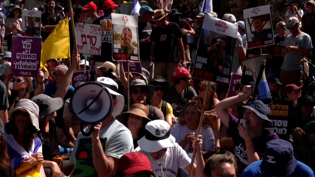 রোববার (১৭ আগস্ট) তেল আবিবের হোস্টেজ স্কোয়ারে অনুষ্ঠিত সেই প্রতিবাদ সমাবেশে যোগ দেয় প্রায় ৫ লাখ মানুষ।