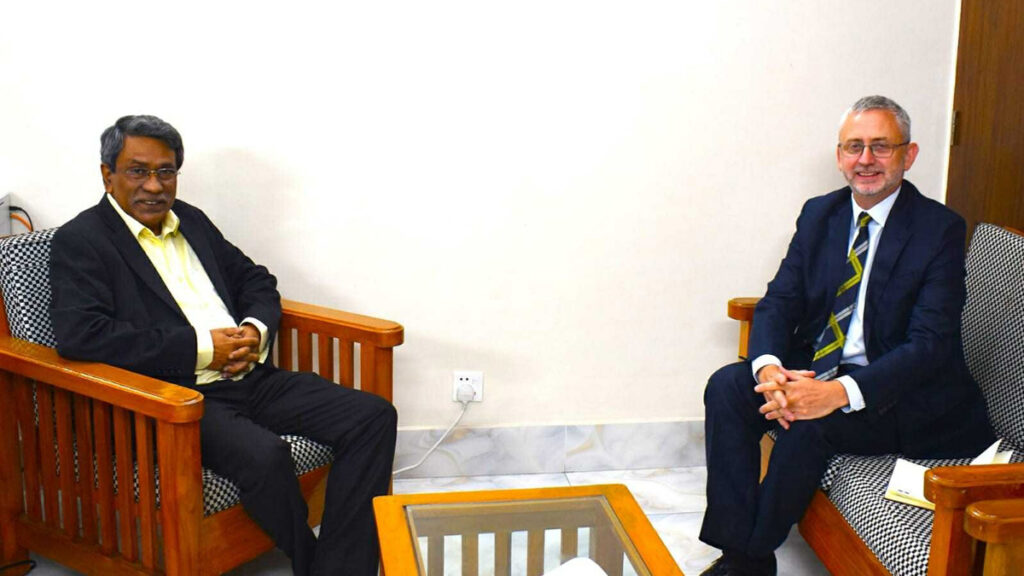 জাতীয় ঐকমত্য কমিশনের সহ-সভাপতি অধ্যাপক আলী রীয়াজের সঙ্গে বাংলাদেশে নিযুক্ত ইউরোপীয় ইউনিয়নের রাষ্ট্রদূত মাইকেল মিলারের বৈঠক অনুষ্ঠিত হয়েছে। বৃহস্পতিবার (২১ আগস্ট) ঐকমত্য কমিশনের কার্যালয়ে এই বৈঠক অনুষ্ঠিত হয়।
