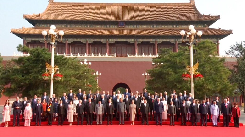 এ সময়, তাদের সাথে তিয়ানআনমেন স্কয়ারে ঐতিহ্যবাহী একটি ভবনের সামনে সারিবদ্ধ ভাবে দাঁড়িয়ে ছবি তোলেন শি জিনপিং। অনুষ্ঠানে উপস্থিত ছিলেন বিশ্বের নানা প্রান্তের প্রায় শ’খানেক অতিথি।