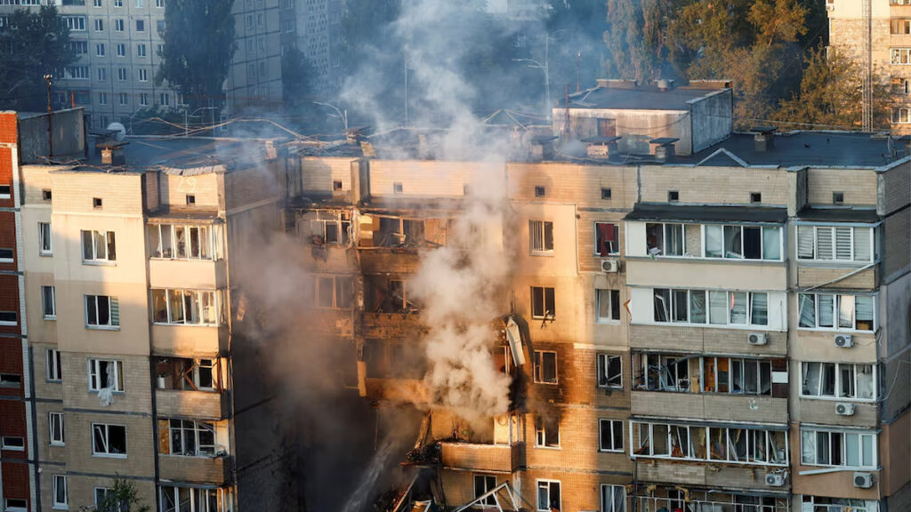 ড্রোনের ধ্বংসাবশেষ থেকে কিয়েভের পশ্চিমাঞ্চলের স্ভিয়াতোশিনস্কি এলাকায় ১৬ তলা একটি ভবন ও দুটি ৯ তলা ভবনের ওপরের অংশে আগুন লেগে যায় বলেও জানান মেয়র।