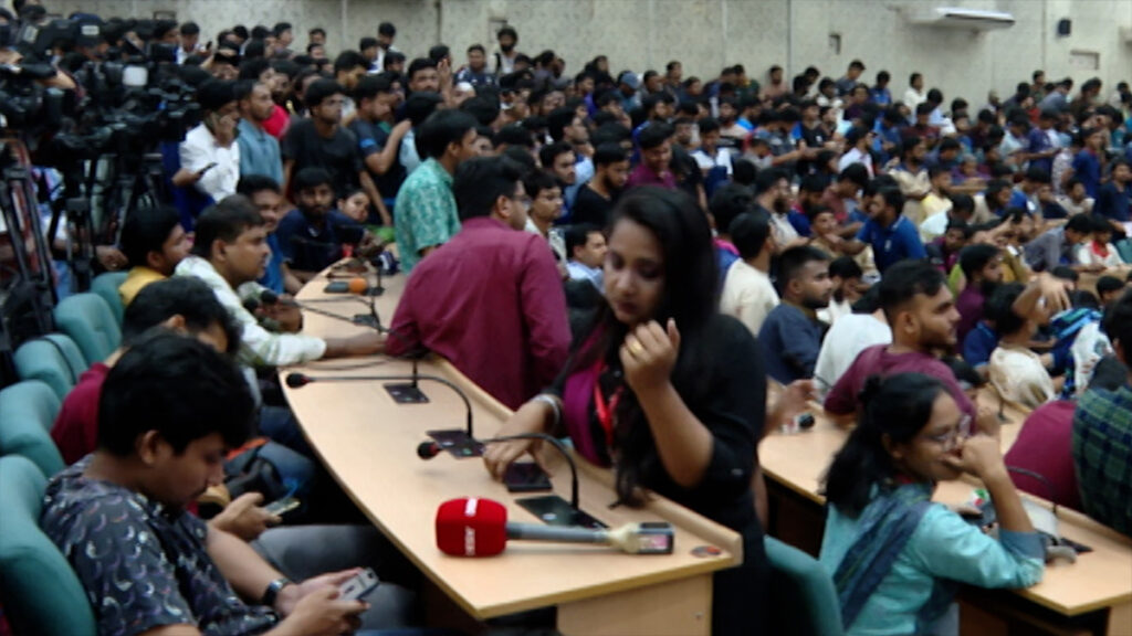 এর আগে, মঙ্গলবার দিবাগত রাত ১২টার কিছু আগে শিক্ষার্থীরা জড়ো হলে সিনেট ভবনের মিলনায়তনটি মুহূর্তেই ভরে যায়। এরপর থেকে ক্রমাগত ভিড় বাড়তেই থাকে।
