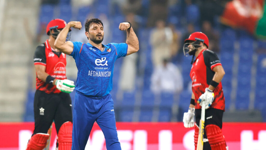 আবুধাবিতে ব্যাট করতে নেমে শুরুতেই গুরবাজকে হারায় আফগানিস্তান। উইকেটে থিতু হতে পারেননি ইবরাহিম জাদরান।। এরপর ৫১ রানের জুটি গড়ে প্রাথমিক বিপর্যয় সামাল দেন মোহাম্মদ নবী ও সাদিকুল্লাহ অতল। এই জুটি ভাঙে নবী ৩৩ রানে আউট হলে। এরপর ২১ বলে ৫৩ রানের ঝড়ো ইনিংস খেলেন আজমতউল্লাহ ওমরজাই। শেষ পর্যন্ত এক প্রান্ত আগলে রাখা অতলের ৭৩ রানের ইনিংসে ১৮৮ রানের বিশাল পুঁজি পায় আফগানরা।