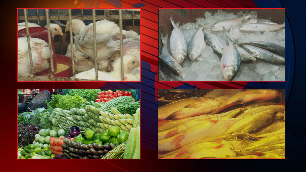 ছুটির দিনে রাজধানীর বাজারে মাছের দাম চড়া। পূজা উপলক্ষে আরও চড়েছে ইলিশের বাজার। তবে বিক্রেতাদের দাবি, জেলেদের হাত ঘুরে নানাভাবে ইলিশ ভারতে চলে যাচ্ছে। সেজন্য বড় আকারের ইলিশ মিলছে না। অন্যদিকে নতুন করে উত্তাপ ছড়িয়েছে পোল্ট্রি বাজারে। কেজি প্রতি ব্রয়লার মুরগির দাম বেড়েছে ২০ টাকা; বিক্রি হচ্ছে ১৯০ টাকা কেজিতে।