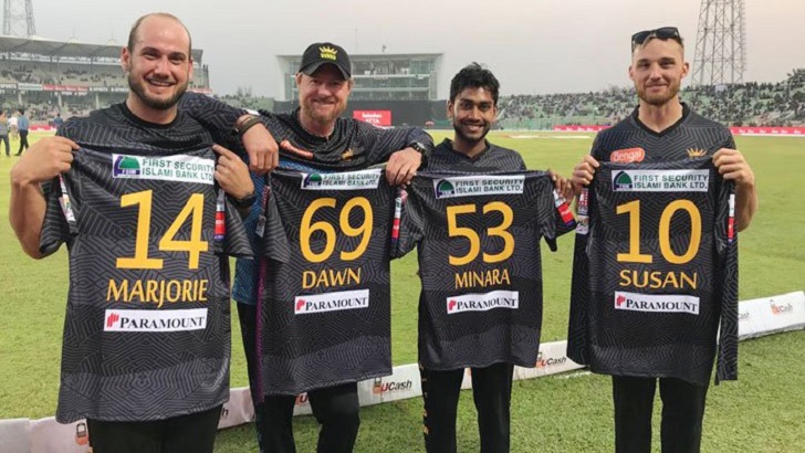 কিংস অধিনায়ক মিরজের জার্সিতে লেখা রয়েছে তার মায়ের নাম ‘মিনারা’। আরেক কিংস তারকা সৌম্য সরকারের জার্সিতে লেখা আছে তার মায়ের নাম ‘নমিতা’। এছাড়া কোচ ল্যান্স ক্লুজনারের জার্সিতে লেখা রয়েছে ‘ডন’।