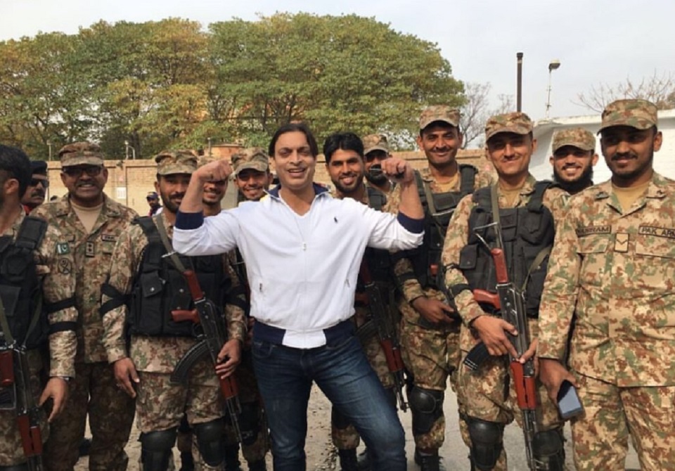 পাকিস্তানের সেনা সদস্যের সাথে হাসিমুখে ছবি টুইট করেছেন বিশ্ব বিখ্যাত ফার্স্ট বোলার শোয়েব আখতার। টুইট করে তিনি বলেন, কয়েকদিন ধরে আমাদের প্রধানমন্ত্রী বলছেন আমরা যুদ্ধ চাইনা। আলোচনায় বসে সমাধানের পরামর্শ দিয়েছেন। কিন্তু আমাদের দেশ যদি হুমকির মুখে পড়ে তাহলে যথাযথ জবাব দেয়া হবে।