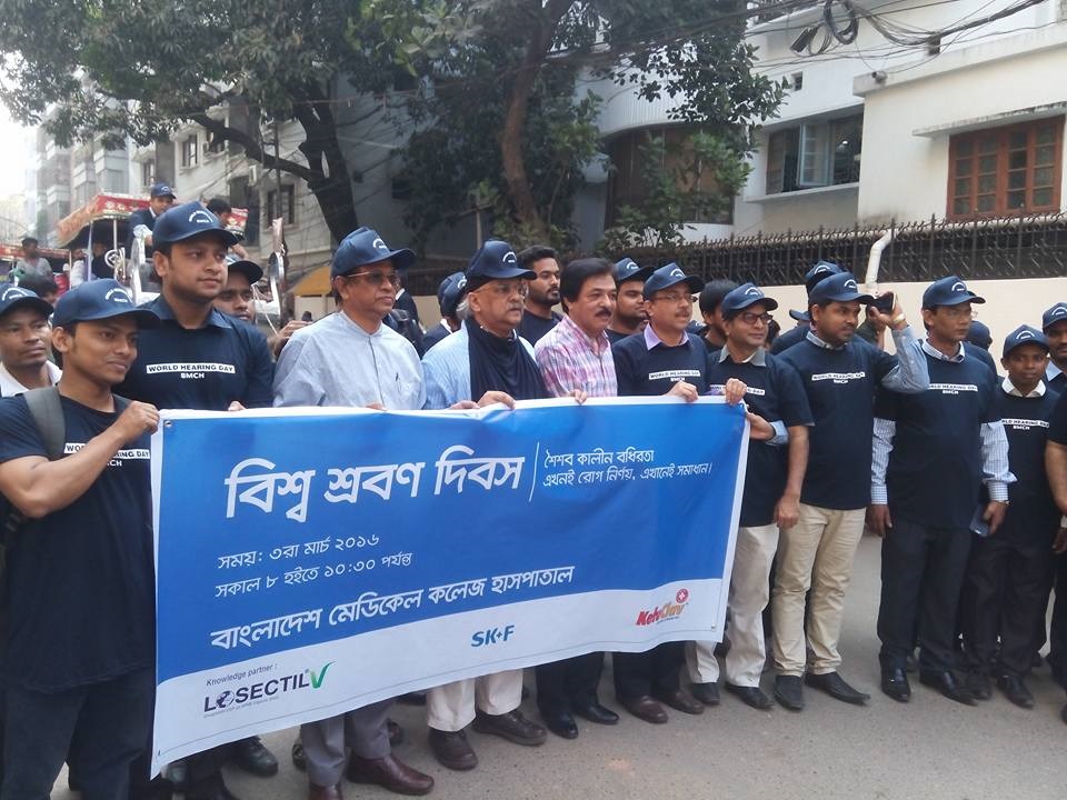 বিশ্ব শ্রবণ দিবস উপলক্ষে সকালে র্যালি’র আয়োজন করেছে জাতীয় নাক কান গলা ইনস্টিটিউট ও হাসপাতাল। হাসপাতাল কম্পাউন্ডের সামনে থেকে র্যালি তেজগাঁও সড়কের বিভিন্ন পয়েন্ট ঘুড়ে আসে।এতে হাসপাতালের চিকিৎসক, নার্সসহ সব বিভাগের কর্মকর্তারা অংশ নেন। এসময় হাসপাতালের পরিচালক অধ্যাপক ডাঃ মোঃ আবু হানিফ বলেন, মানুষ এখন নিজের স্বাস্থ্যে প্রতি অনেক বেশি সচেতন। তবে কানের বিষয়ে আরো সচেতনতা বাড়াতে দিবসটি পালনে বিভিন্ন কর্মসূচী পালন করা হয়ে থাকে।