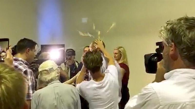 নিউজিল্যান্ডের ক্রাইস্টচার্চে গত শুক্রবার দুই মসজিদে ভয়াবহ হামলা হয়। সেই হামলায় রক্তাক্ত হয়ে উঠে মসজিদ। হামলায় নিহত হন ৫০ জন। আর এই হামলার দায় মুসলিম অভিবাসীদের উপর চাপিয়ে বিতর্ক উসকে দেন অস্ট্রেলিয়ার সিনেটর ফ্রেজার অ্যানিং। এর প্রতিবাদ জানিয়ে সিনেটরের মাথায় ডিম ভেঙে দেন এক তরুণ।