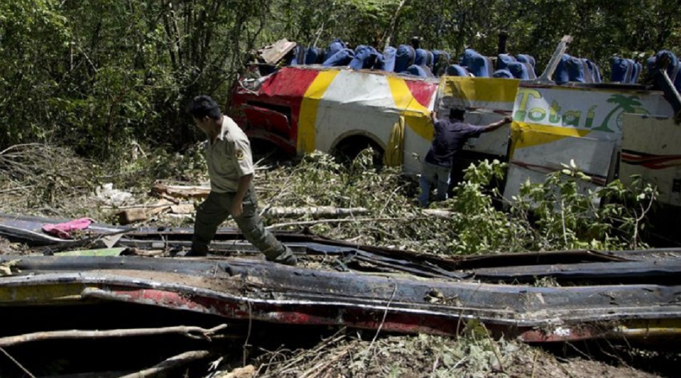 সোমবার পুলিশ জানায়, দেশটির দক্ষিণ-পশ্চিমাঞ্চলের ইয়োলোসিতা শহরে ঘটে এ দুর্ঘটনা। লা-পাজ থেকে উত্তরের বেনিতে যাওয়ার পথে, একটি পাহাড়ি রাস্তায় আরেকটি গাড়ির সাথে মুখোমুখী সংঘর্ষ হয় বাসটির। এসময় ছিটকে নিচের খাদে পড়ে যায় বাসটি। দুর্ঘটনার কারণ জানতে তদন্ত চলছে। অবকাঠামোগত দুর্বলতা আর নানা অব্যবস্থাপনার কারণে সড়ক দুর্ঘটনা বলিভিয়ায় প্রায় নিয়মিত ঘটনা।