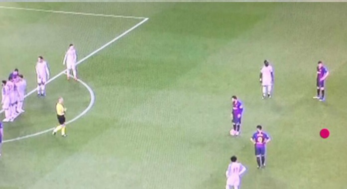 মেসি শুধু ওই বলটি তিন মিটার এগিয়েই নেননি। বরং ফ্যাবিনহো তাকে মাঠের ডান দিকটায় ফাউল করেন। আর মেসি ফ্রি কিক নেন কিছুটা গোলবারের মাঝ বরাবর বল পাতিয়ে।