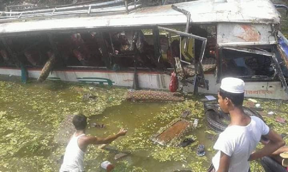 বাস নিয়ন্ত্রণ হারিয়ে খালে, নিহত ৩