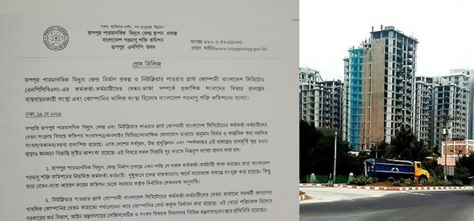 সম্প্রতি রূপপুর পারমাণবিক বিদ্যুৎ কেন্দ্র এবং নিউক্লিয়ার পাওয়ার প্লান্ট কোম্পানি বাংলাদেশ লিমিটেডের কর্মকর্তা- কর্মচারীদের বেতন সংক্রান্ত বিষয়ে যে সংবাদ প্রকাশিত হয়েছে তা অনুমান নির্ভর, ভিত্তিহীন ও কাল্পনিক বলে বাংলাদেশ পরমানু শক্তি কমিশন এক সংবাদ বিজ্ঞপ্তিতে জানায়।