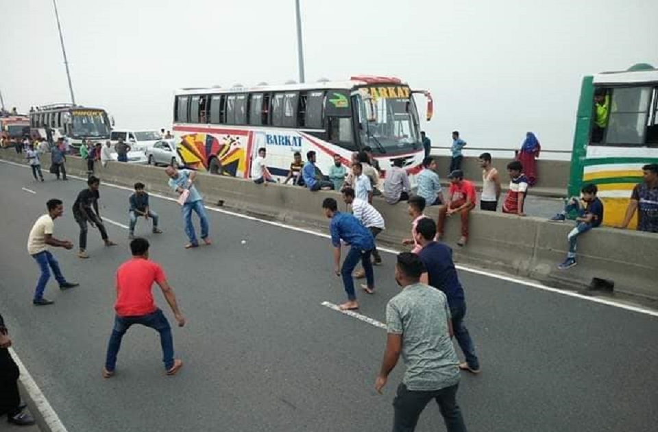 যানজটে স্থবির বঙ্গবন্ধু সেতুতে ক্রিকেট উৎসব!