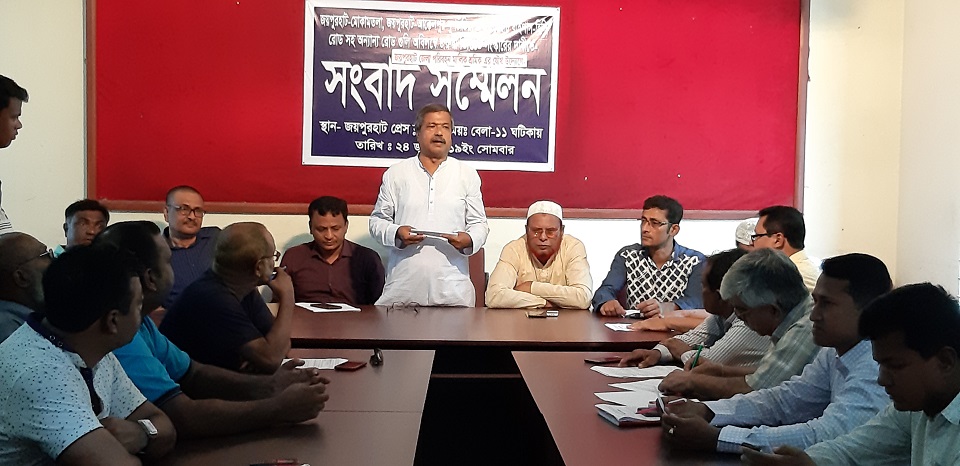 জয়পুরহাট-মোকামতলা, জয়পুরহাট-আক্কেলপুর, জয়পুরহাট-দুপচাঁচিয়া ও জয়পুরহাট-বাইপাস হিলি সড়কসহ অন্যান্য সড়কগুলি জরুরী ভিত্তিতে সংস্কারের দাবীতে সংবাদ সন্মেলন করেছে জয়পুরহাটের বাস- মিনিবাস মালিক গ্রুপ, জয়পুরহাট জেলা ট্রাক ও ট্যাংক লড়ি মালিক গ্রুপ, জেলা মোটর শ্রমিক ইউনিয়নসহ চারটি সংগঠন।