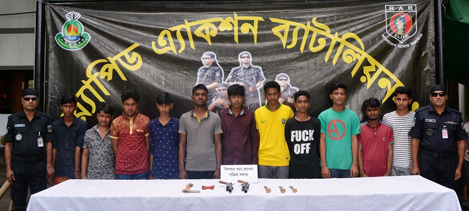 গ্রেফতারকৃতরা হলো- হাবিবুর রহমান দাড়িয়া, ফয়সাল আহম্মেদ, রাকিবুল হাসান, রমজান আলী, বাবু মিয়া, নজরুল ইসলাম, শাহীন হাওলাদার, তুহিন ইসলাম, মাহমুদ হীরা, রনি ইসলাম ও সাগর হোসেন। এসময় “নিউ নাইন স্টার” কিশোর গ্যাং গ্রুপের ১১ সদস্যদের কাছ থেকে ২টি শর্টগান, ৪রাউন্ড কার্তুজ, ১টি চাইনিজ কুড়াল ও ৩টি ধারালো ছুরি উদ্ধার করে র‌্যাব।