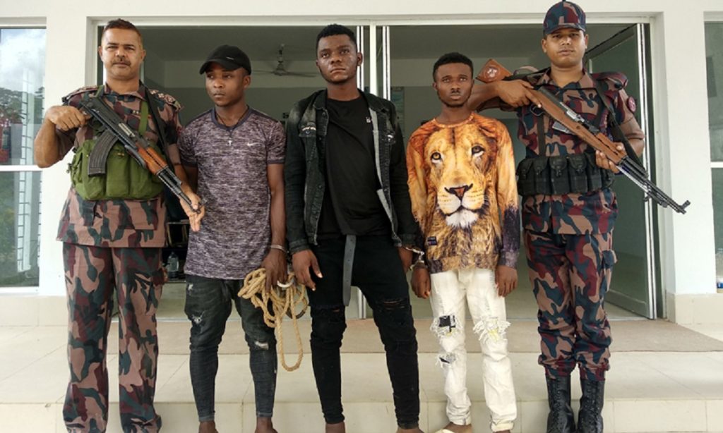 পুলিশ জানায়, জেলার আখাউড়া উপজেলা মনিয়ন্দ ইউনিয়নের ঘাগুটিয়া সীমান্ত এলাকার ২০১৮ মেইল পিলারের দৌলতপুর সীমান্তপথে ভারতে প্রবেশের সময় তিন নাইজেরিয়ান নাগরিককে আটক করেছে বিজিবি। এই তিনজন নাইজেরিয়ান ২০ জুলাই বাংলাদেশে আসেন।