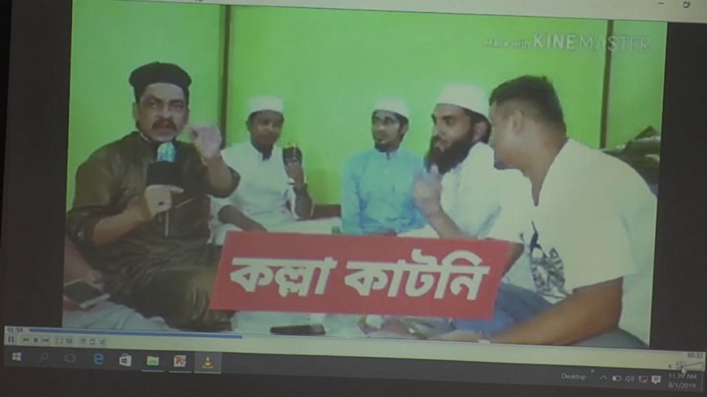 দুপুরে সংবাদ সম্মেলনে চট্টগ্রাম জেলা পুলিশ কর্মকর্তারা জানান, গ্রেফতার আলমগীর জাগরণ শিল্পীগোষ্ঠীর ব্যানারে ৫ মিনিট ৫৩ সেকেন্ডের একটি ভিডিওচিত্র বানিয়ে প্রচার করেছেন। গানে গানে তিনি ছেলে ধরা ও গলা কাটার গুজব ছড়ানোর পাশাপাশি শিশুদের স্কুলে না পাঠানোর বার্তা দেন তিনি। নাজিরহাট বাজারের বাসা থেকে তাকে গ্রেফতারের সময় ভিডিওধারণের কাজে ব্যবহৃত কর্ডলেস মাইক্রোফোন, গান লেখা নোটবই সহ বিভিন্ন সরঞ্জাম পাওয়া যায়।