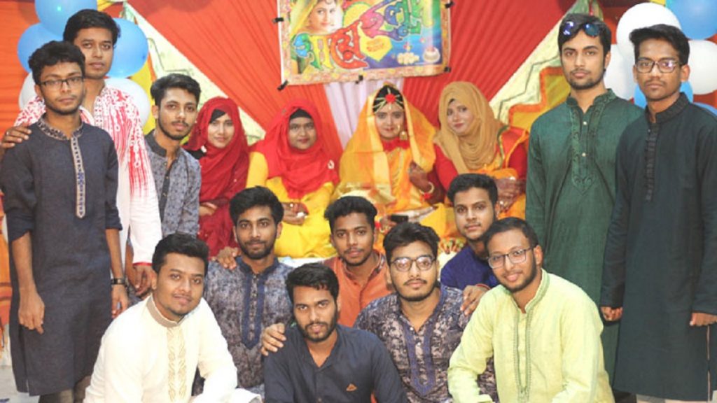 ঈদের পরে তার বিয়ে। সহপাঠীরা তার বাড়িতে যেতে পারবে না। তাই ক্যাম্পাসেই আয়োজন করা হলো ‘গায়ে হলুদ’অনুষ্ঠান। এতে অংশ নেন শিক্ষক, সহপাঠী ও সিনিয়র-জুনিয়ররাও।