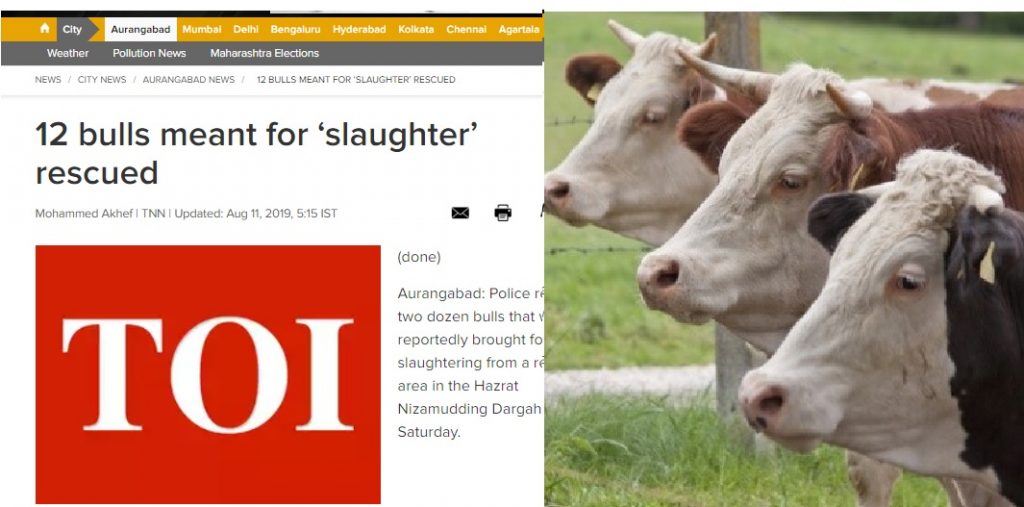 আগামীকাল সোমবার ঈদুল আজহায় কোরবানি দেয়ার জন্য গরু কিনেছিলেন ভারতের মহারাষ্ট্রের আওরঙ্গাবাদ শহরের বেশ কিছু মুসলিম পরিবার। কোরবানির জন্য গরু রাখা হয়েছে খবর পেয়ে শহরের হযরত নাজিমুদ্দিন দরগা এলাকায় শনিবার অভিযান চালায় পুলিশ।