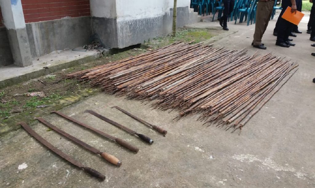 পুলিশ সুপার জানান, পূর্ব শত্রুতার জের ও স্থানীয় আধিপত্য বিস্তারকে কেন্দ্র করে খোদাদিলা গ্রামের জাকির হোসেন (৪৫) গ্রুপের সাথে একই এলাকার হাসান গ্রুপের মধ্যে বিরোধ চলে আসছে। এরই জের ধরে গত রবিবার ও সোমবার দুই গ্রুপের মধ্যে দুই দফায় হামলা পাল্টা হামলার ঘটনা ঘটে। এসময় ১০/১৫টি বাড়ি ঘর ভাংচুর করা হয়। খবর পেয়ে অতিরিক্ত পুলিশ সুপার (সদর সার্কেল) শাহেদ আহম্মেদ এর নেতৃত্বে নরসিংদী সদর মডেল থানা পুলিশ ঘটনাস্থলে পৌছে পরিস্থিতি নিয়ন্ত্রণে আনে। এসময় বিশেষ অভিযান পরিচালনা করে খোদাদিলা গ্রামের মৃত জুলমত আলীর ছেলে আলাউদ্দিন এর বসত ঘর হতে ৮টি বালতির মধ্যে রাখা লাল, কালো ও হলুদ রংয়ের স্কচটেপ মোড়ানো ৬২ টি ককটেল, ঘরের বারান্দায় রাখা ১৪০টি টেঁটা ও ৫টি রামদা উদ্ধার করা হয়।