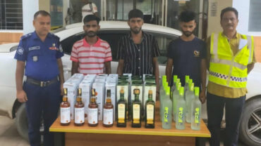 শেরপুর সীমান্তে ভারতীয় মদ ও প্রাইভেটকারসহ ৩ মাদক কারবারি আটক