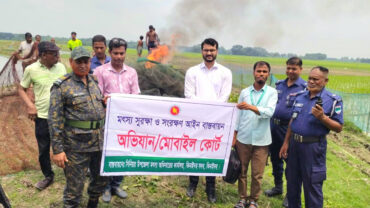 ঝিনাইদহে অবৈধ চায়না দোয়াড়ি ও কারেন্ট জাল জব্দ, বাঁধ উচ্ছেদ