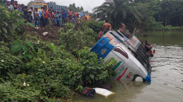 ঝিনাইদহের কালীগঞ্জে বাস উল্টে পুকুরে, আহত অন্তত ১০