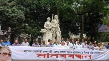 খালেদার মুক্তির দাবিতে ঢাবি সাদা দলের মানববন্ধন