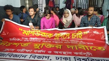 জাবিতে ধর্ষণের হুমকি, ছাত্রলীগ নেতাদের শাস্তির দাবিতে মানববন্ধন