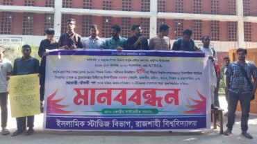 এনটিআরসিএ নিয়োগ নীতিমালা সংশোধনের দাবিতে রাবিতে মানববন্ধন