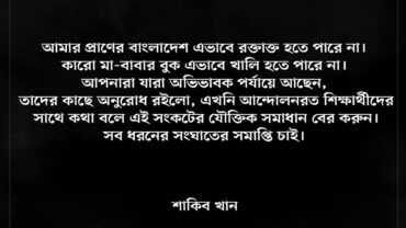 কোটা আন্দোলন নিয়ে অভিনেতা শাকিব খানের পোস্ট