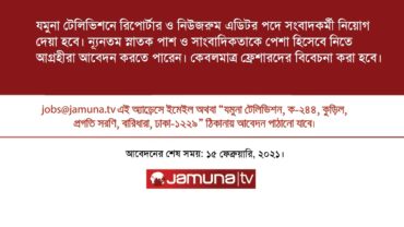 নবীন গণমাধ্যমকর্মী নিয়োগ দেবে যমুনা টেলিভিশন