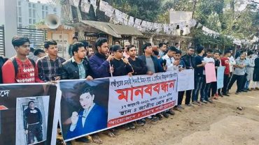 বেসরকারি বিশ্ববিদ্যালয় শিক্ষার্থী মিজান হত্যায় জড়িতদের গ্রেফতার ও শাস্তির দাবিতে মানববন্ধন