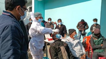 মাস্ক ছাড়াই বাজারে আসায় আটক করে করোনা পরীক্ষা