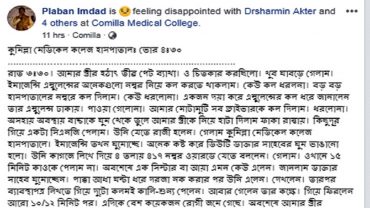 স্ত্রীর চিকিৎসা নিয়ে নির্বাহী ম্যাজিস্ট্রেটের ফেসবুক স্ট্যাটাসে তোলপাড়