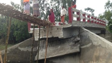 ৩ মাসের মাথায় ভেঙে গেলো ব্রিজ, বাঁশের সাঁকো দিয়ে চলাচল