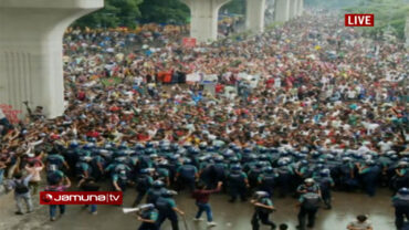 পুলিশের ব্যারিকেড ভেঙে শাহবাগে কোটা আন্দোলনকারীরা