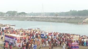 ময়মনসিংহের ব্রহ্মপুত্র নদে মহাষ্টমী স্নান উপলক্ষে পুণ্যার্থীদের ঢল